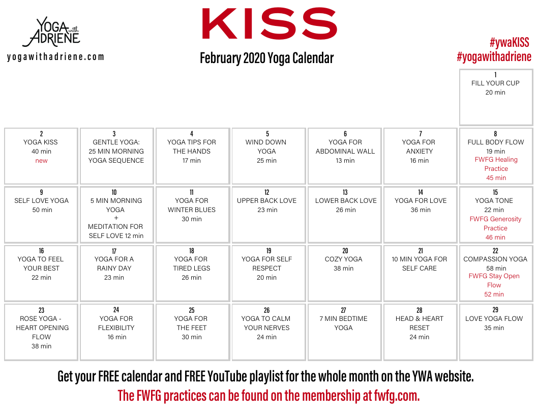 Yoga With Adriene Free monthly Yoga calendar!